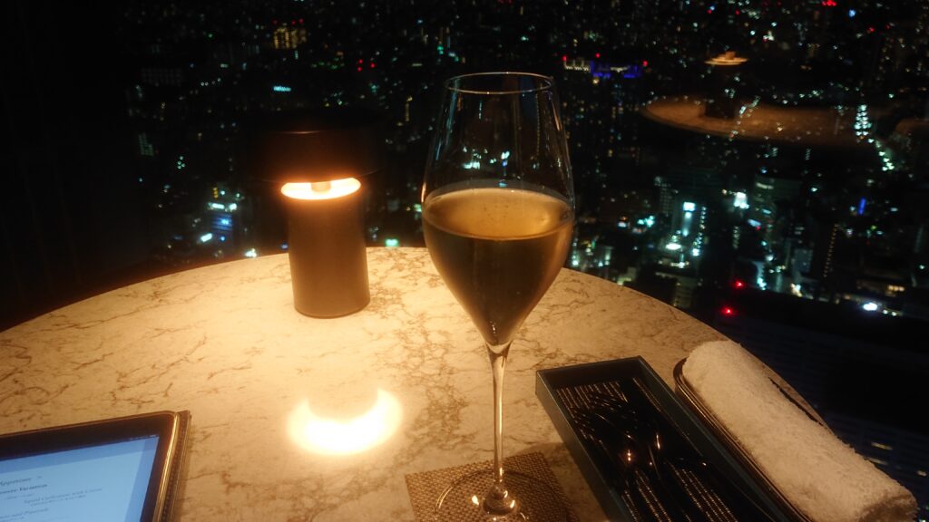 ウェルカムシャンパンの味わいと夜景との相性