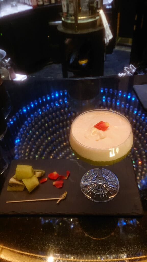 こちらはフレッシュクリームを使ったクリーミーなカクテル。クリームはヨーグルトのような味わいですが、レモンやバラなどで再現しているとのこと。